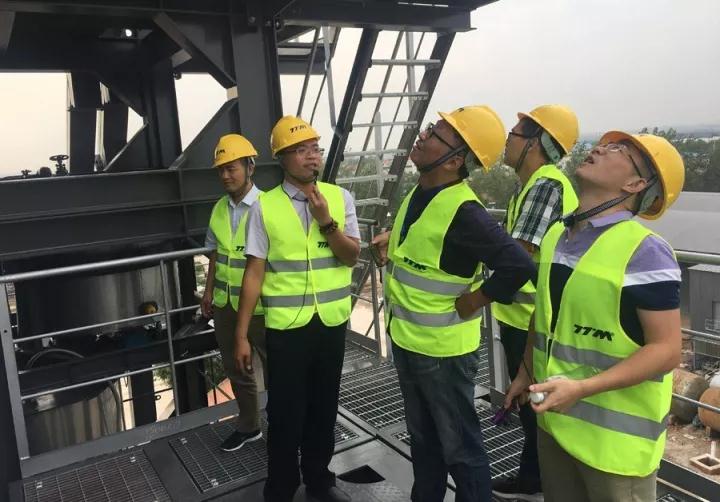 領導一行在技術工程師的指引下參觀設備的運轉