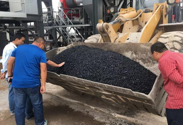 此次生產的瀝青混合料之中RAP再生料的添加比例為30%,成品料達到客戶要求,并在觀摩會現場進行鋪筑,廢舊瀝青料重新回歸地面。