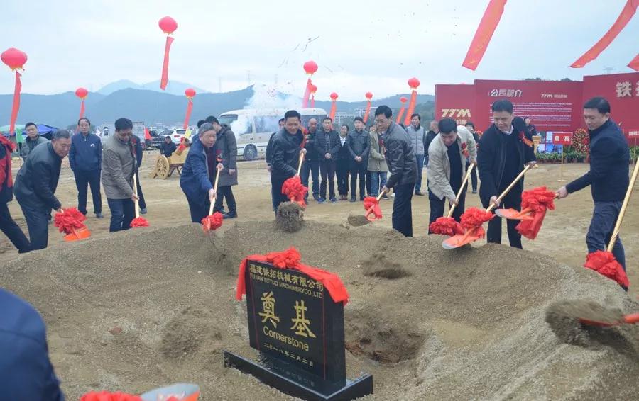 2018年2月2日上午8點25分,福建鐵拓機械有限公司瀝青攪拌設備生產項目開工奠基儀式在洛江區河市西片區隆重舉行。市委常委、統戰部部長林萬明、區委書記洪飛躍、區政府區長蘇漢庭、區政府常務副區長王明元、區人大副主任林新平、區政協副主席李奉恒等領導,鐵拓機械董事長王希仁、鐵拓機械股東及高管、行業專家教授、用戶代表、供應商代表出席儀式并為項目培土奠基,鐵拓機械管理層職工與來自國內外100多家供應商嘉賓、社會各界朋友、行業媒體朋友共同見證了這一重要時刻。