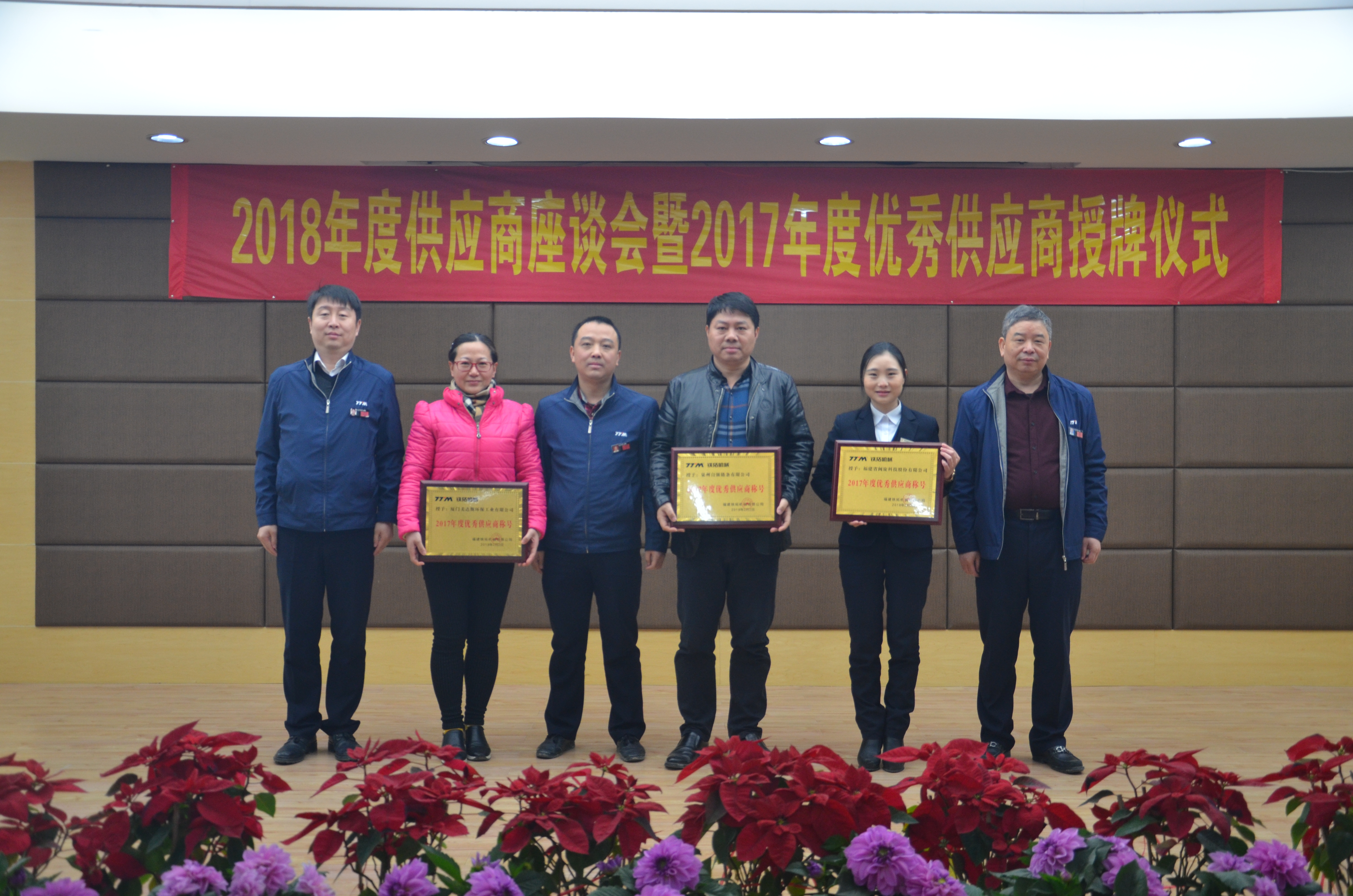 公司授予福建省閩旋科技股份有限公司、廈門美達斯環(huán)保工業(yè)有限公司、泉州自強鏈條有限公司“2017年度優(yōu)秀供應商”稱號
