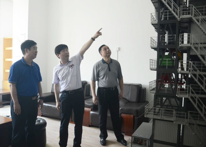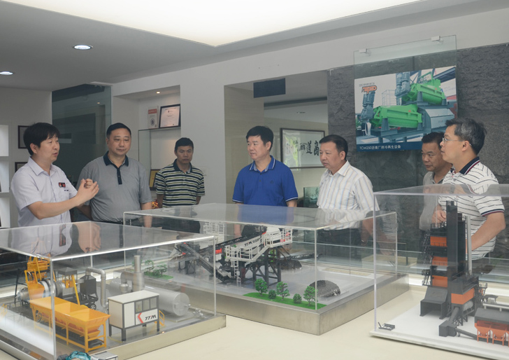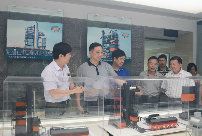 肖明華副主席一行人正在參觀考察環保型瀝青混合料攪拌設備模型
