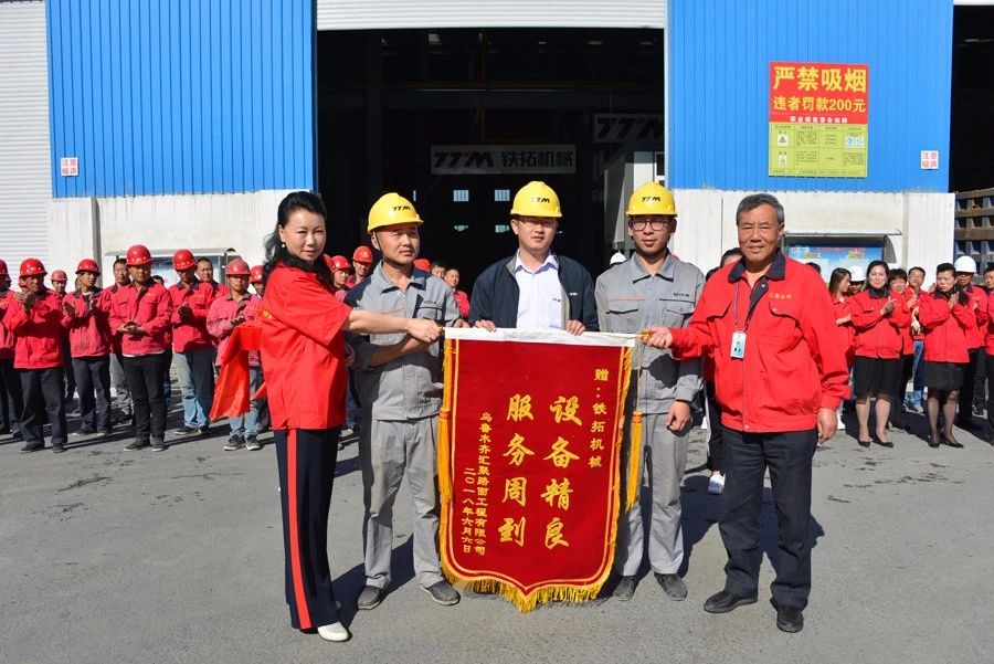 剪彩儀式結束后,隋思玉董事長親自贈予鐵拓機械“設備精良,服務周到”紅色大錦旗,對鐵拓機械在項目實施過程的各項工作給以肯定。