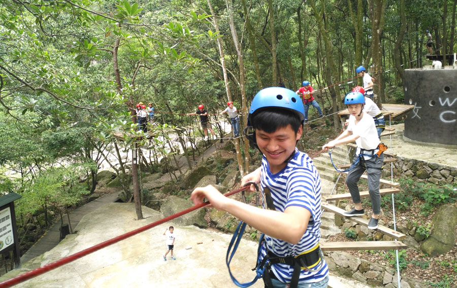 這次團隊活動的地點在風景優美的莆田九龍谷。在山水相依,青木環繞的美景下,技術研發中心的各位精英忘掉了炎熱,體驗了多種精心安排的挑戰項目,有叢林穿越、高空滑索和賽竹排運動等等,挑戰力十足。