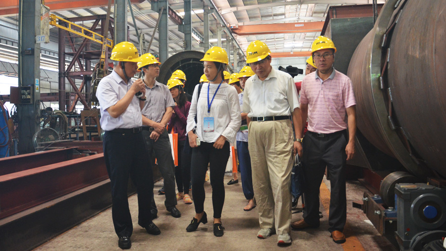記者團走進鐵拓機械生產車間,探訪大型瀝青攪拌設備的制造流程和工藝。