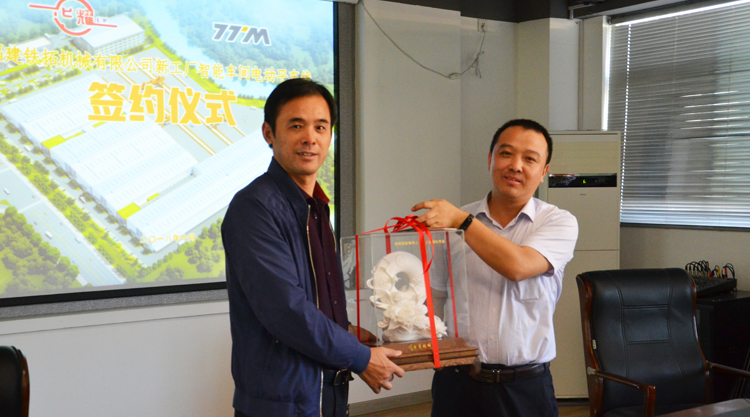 10月30日下午,福建鐵拓機械有限公司與江蘇華耀機械制造有限公司牽手合作,智能化新工廠建設又一先進轉運設備采購項目落定。此次采購的設備是由江蘇華耀機械制造有限公司生產制造的低壓軌道供電電動平車,總共9臺。雙方代表就該采購項目在鐵拓機械正式簽約。