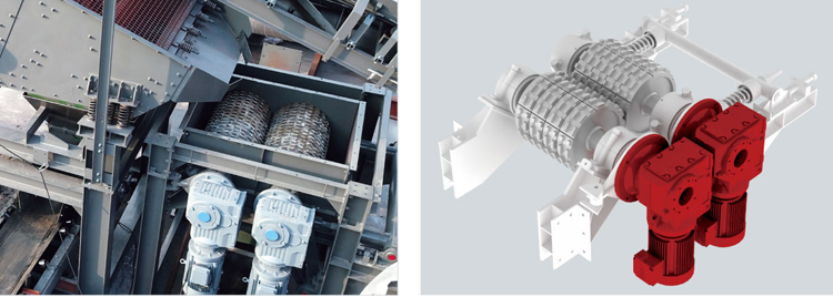 雙輥式二級破碎機,浮動破碎輥,可調整出料粒徑,交錯布置的高耐磨齒板,可有效破碎超規格RAP物料。