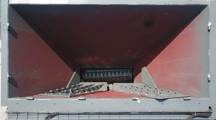螺旋式破碎輥及液壓推壓裝置同時作用,有效破碎大塊RAP物料。遇到無法破碎的堅硬物料,破碎軸后的彈簧張緊裝置自動彈開,可有效電機過載和設備損壞。